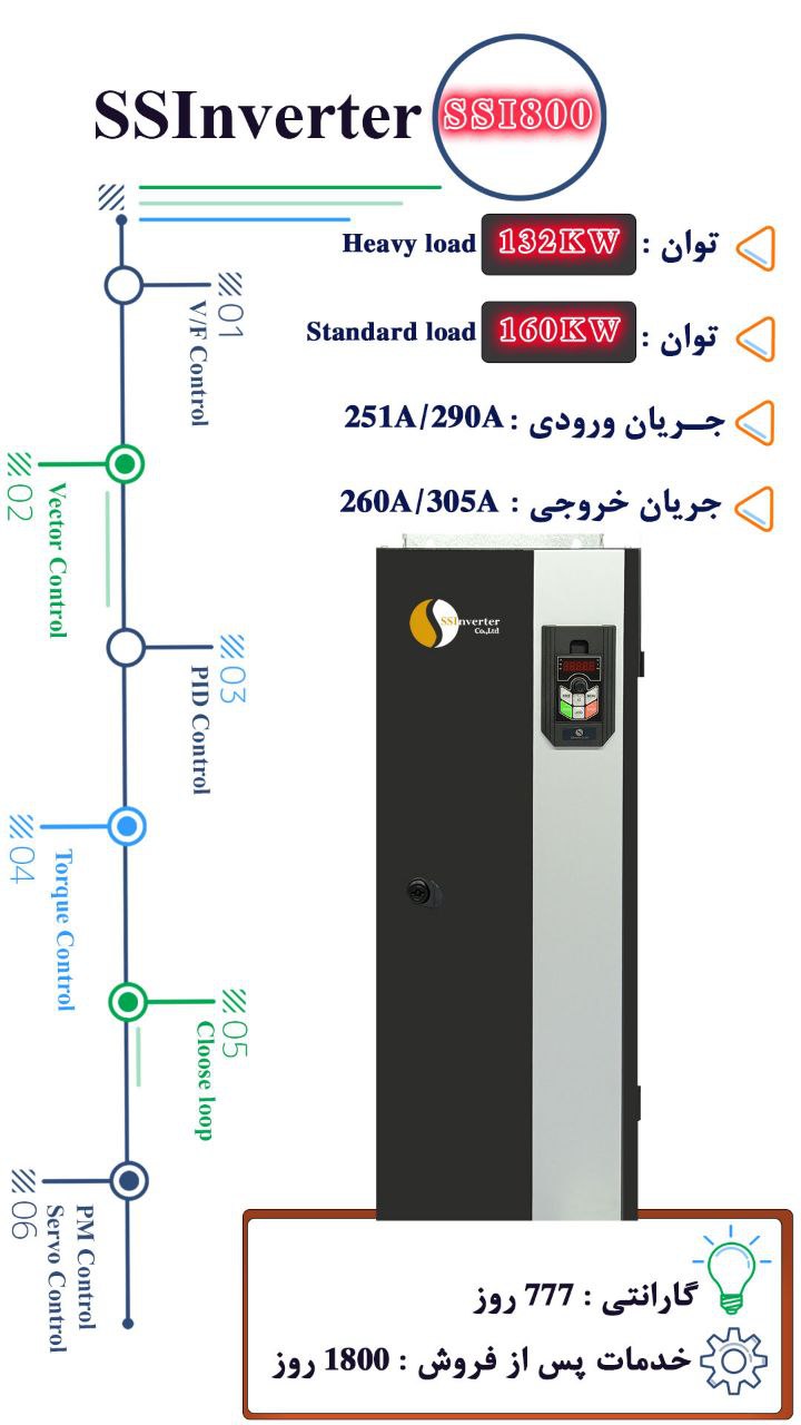 اینورتر ۱۳۲ کیلووات SS سه فاز سنگینکار مدل SSI800